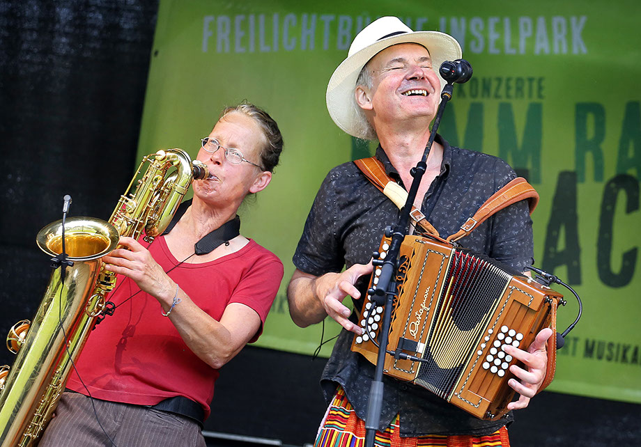 "Die schönste Zeit ..." Anne Wiemann (Saxofon u.a.) und Ulrich Kodjo Wendt (Diatonische Akkordeons) kennen sich seit einem Vierteljahrhundert - und so lange machen sie auch zusammen Musik: laut und leise, wild und sanft, auf der Konzertbühne und anderswo. Sie spielen eigene Stücke, improvisieren und grooven mediterran, afrikanisch, karibisch und vor allem eigen. Dass dabei Filme im Kopf entstehen, mag daran liegen, dass beide auch Filmkomponisten sind. Sie haben gemeinsam die Filmmusik zu abendfüllenden Stummfilmen und zum Dokumentarfilm „Hafenstraße im Fluss“ von Thomas Tode komponiert. Ulrich hat auch Filme von Fatih Akin u.a. vertont … Freut auf lebendige Musik, die ins Herz und in die Beine geht!